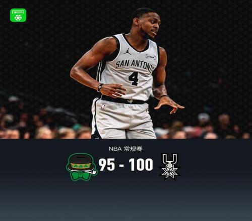 第四节凯尔特人德里克-怀特拿下9分,马刺凯尔登-约翰逊拿下7分,最终凯尔特人95-100不敌马刺