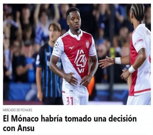 《每日体育报》透露,对于安苏-法蒂,摩纳哥的态度是“再也不想要了”。今年夏天,法蒂的租借合同中有条款:摩纳哥可以支付1200万欧元买断法蒂。不过,摩纳哥完全没有激活该条款的想法。