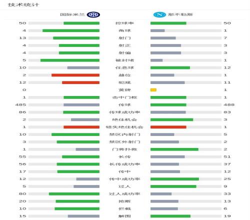 难奈那不勒斯,国米成本赛季五大联赛最后一支收获平局的球队